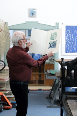 Der Künstler arbeitet besonders gern im Bereich Linol-/Holzschnitt