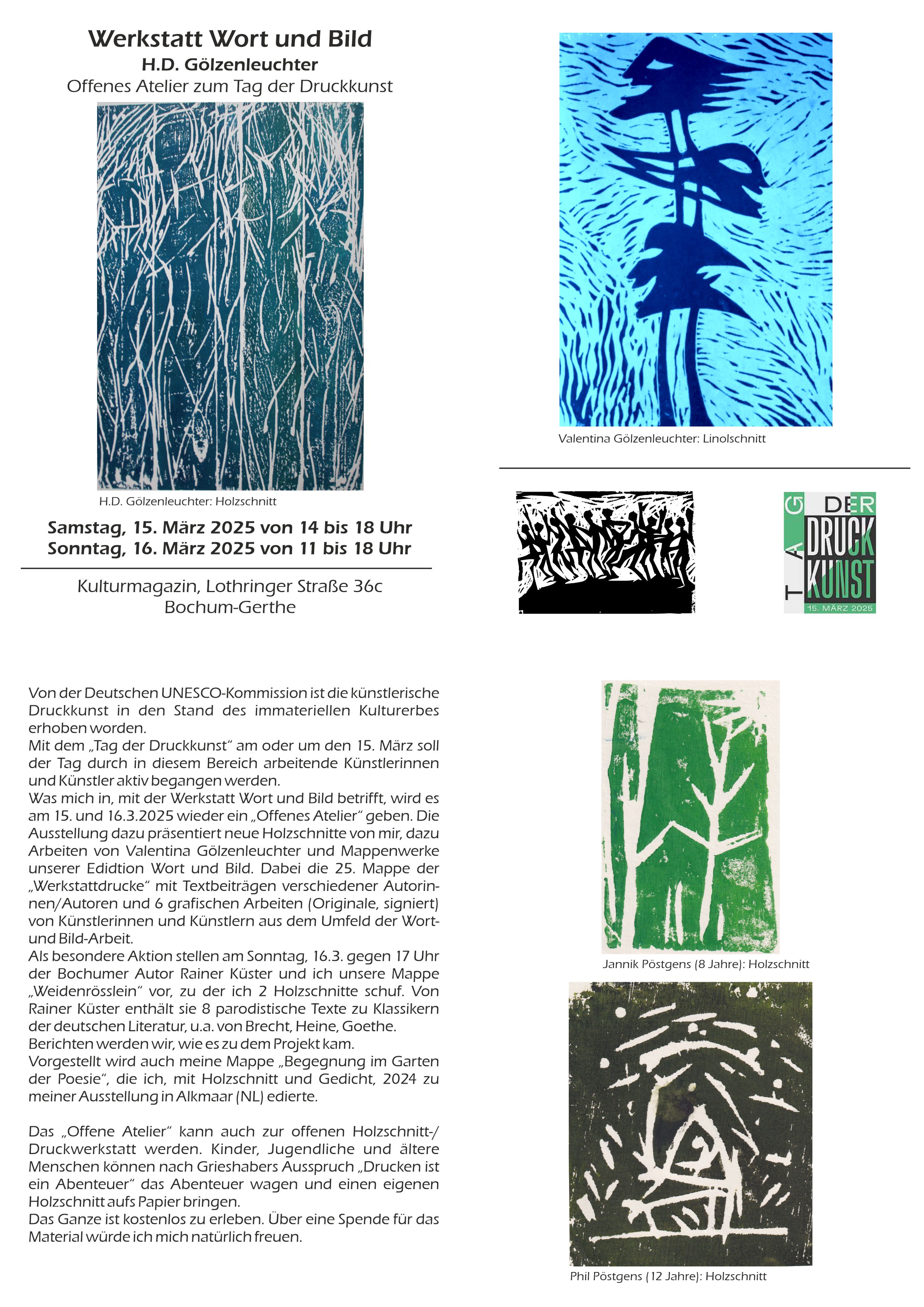Horst Dieter Gölzenleuchters - die Werkstatt Wort und Bild im
